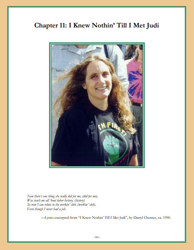 Even though I never had a job.—Lyrics excerpted from “I Knew Nothin’ Till I Met Judi”, by Darryl Cherney, ca. 1990.