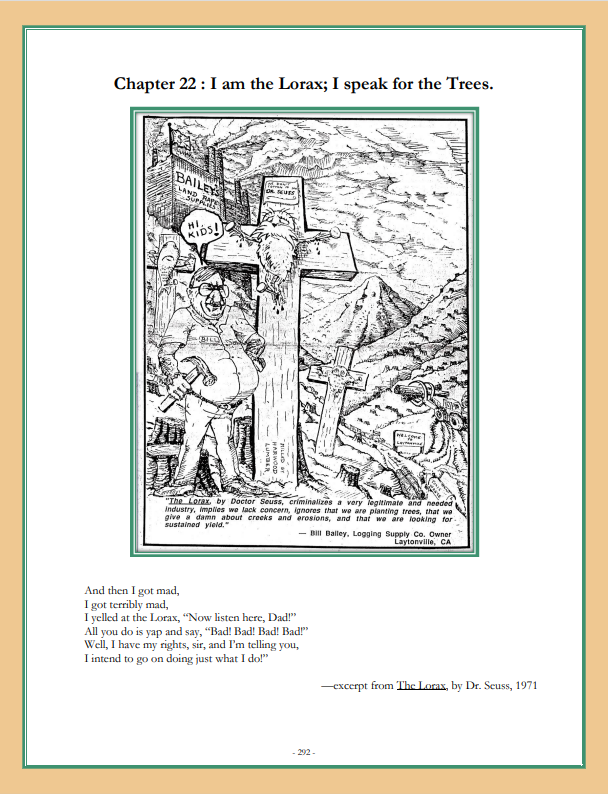 [46] “Bill Bailey vs. The Lorax: The Once-ler of Laytonville”, by Lawrence Livermore, Laytonville Lookout, #34, Winter 1990.