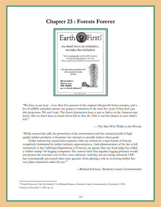 [1] “Forest Protectors Take the Initiative”, by Richard Johnson, Mendocino Country Environmentalists, November 1, 1989.