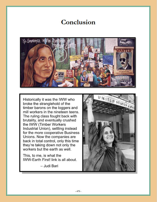 The precedents for COINTELPRO’s past disruption of leftist organizations and movements are many. There is enough evidence to convincingly show that the bombing was nothing less than a direct attack on Earth First!, the IWW, Judi Bari, Darryl Cherney, Redwood Summer, and anyone else who would disrupt business as usual