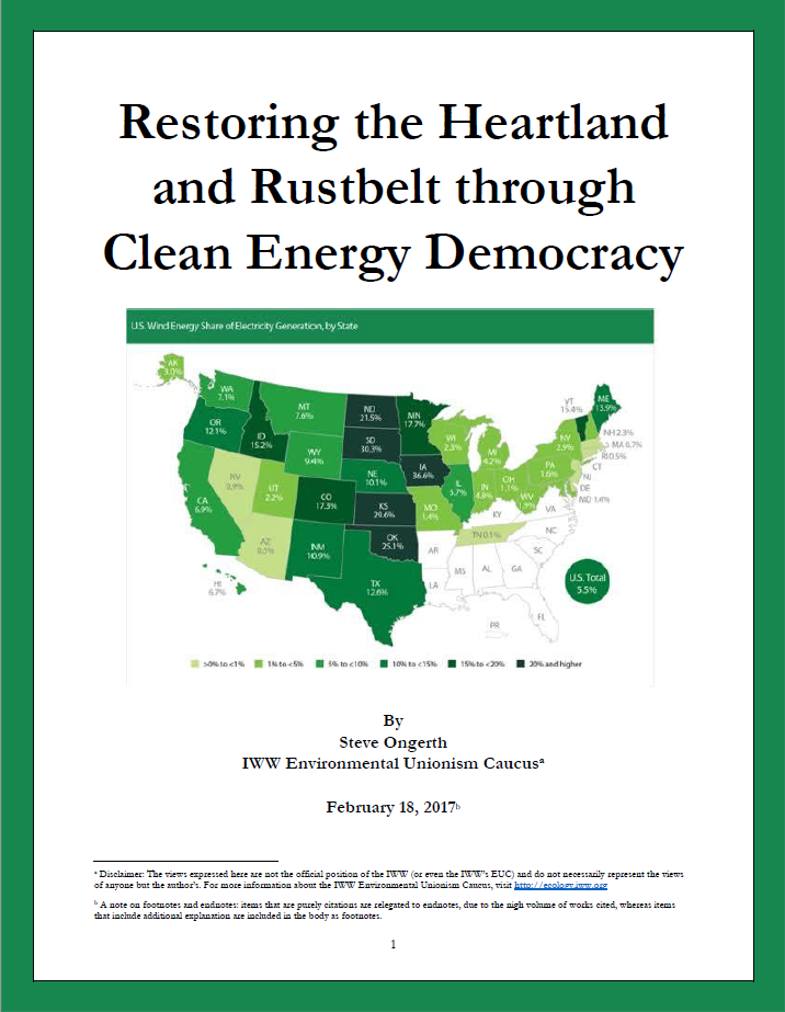 Restoring the Heartland and Rustbelt through Clean Energy Democracy: an Organizing Proposal - April 29, 2017
