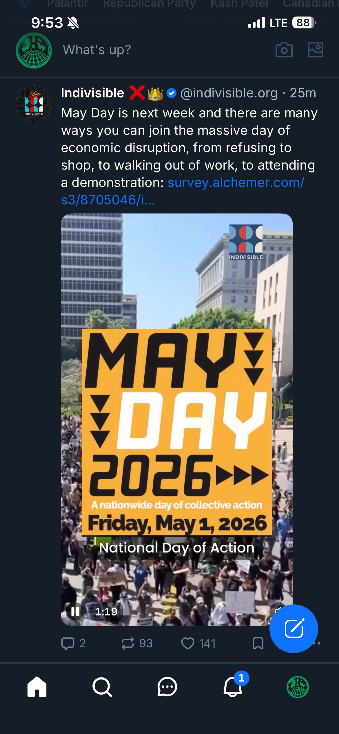 Here is a screenshot of Indivisible urging people to join in the 2026 May Day actions: